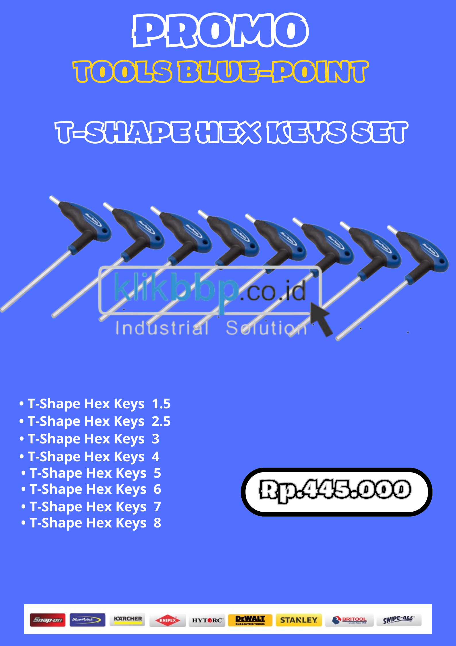 Blue-Point T-Shape Hex Keys Set (8 pcs) – Kunci L T Handle Premium | Promo Rp 445.000
